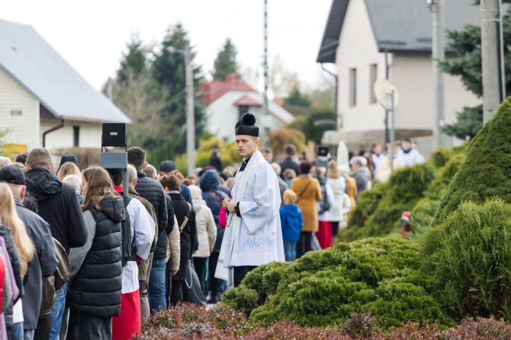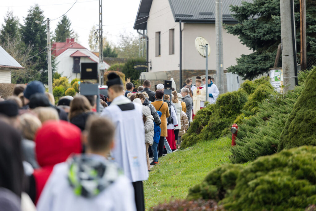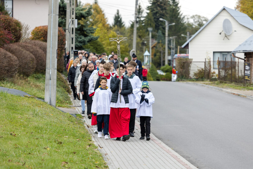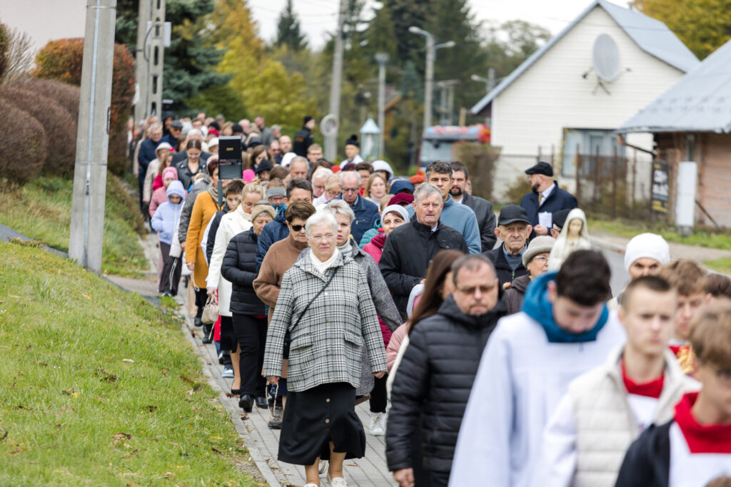 W niedzielę, 19 października 2025 r., po Mszy Świętej o godz. 10:30, odbyła się uroczysta procesja różańcowa do kapliczki Matki Bożej Saletyńskiej, zorganizowana w ramach obchodów XXV Dnia Papieskiego. Wspólna modlitwa i śpiew zgromadziły licznych parafian, którzy w duchu jedności i wiary powierzyli swoje rodziny opiece Maryi.